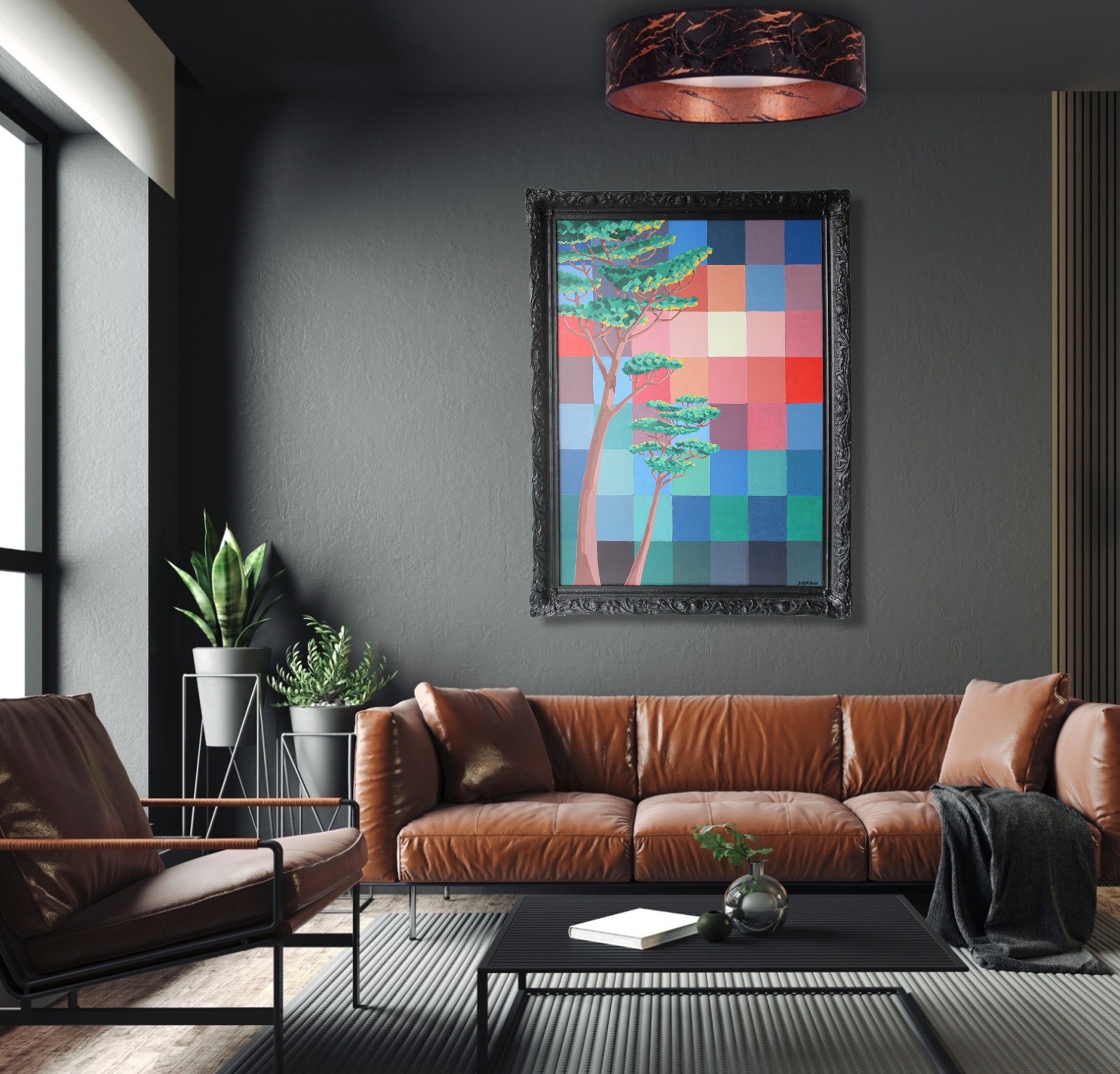 73x99 cm Acrylics on wooden panel in a black bric-a-brac frame. €450,00