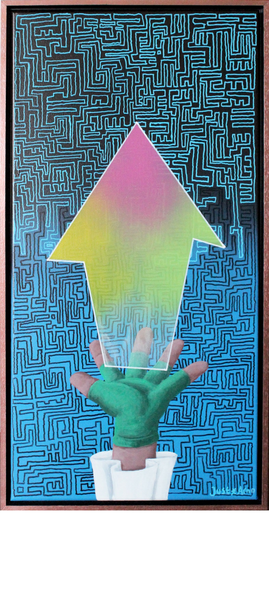 40x80 cm Acrylics and marker on canvas in a copper/black floating frame. €225,00